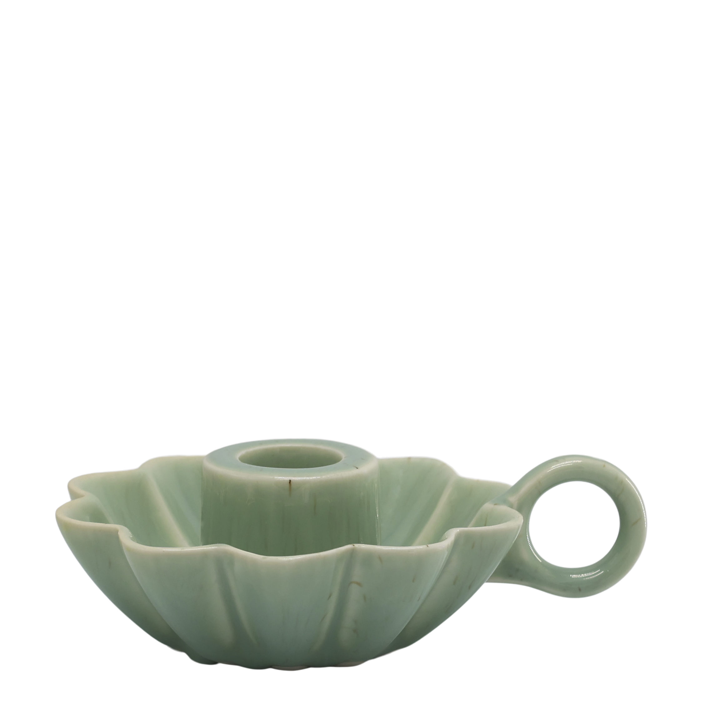 89,00 kr inkl. moms Lägg till i varukorgKammarljusstake i keramik med mjukt blomformad design och vacker ljusgrön ton. Den dekorativa formen ger ett romantiskt och harmoniskt uttryck som passar fint i både klassiska och lantliga hem. En stämningsfull detalj för bord, fönsterbräda eller hylla. Storlek (Ø x H): 10 x 4 cm Färg: Grön Material: Stengods