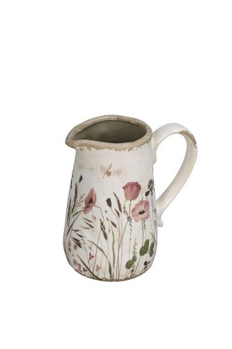 Charmig kanna i stengods med romantiskt blommönster i mjuka, naturnära toner.