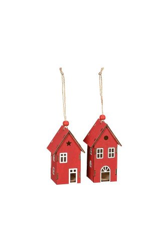 Litet trähus för att hänga i julgranen eller ställa upp som juldekoration.